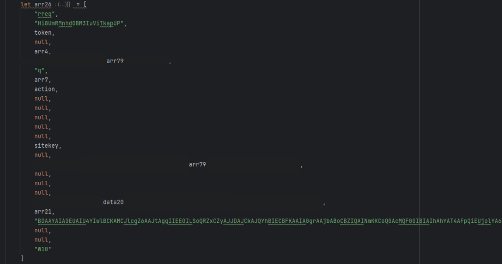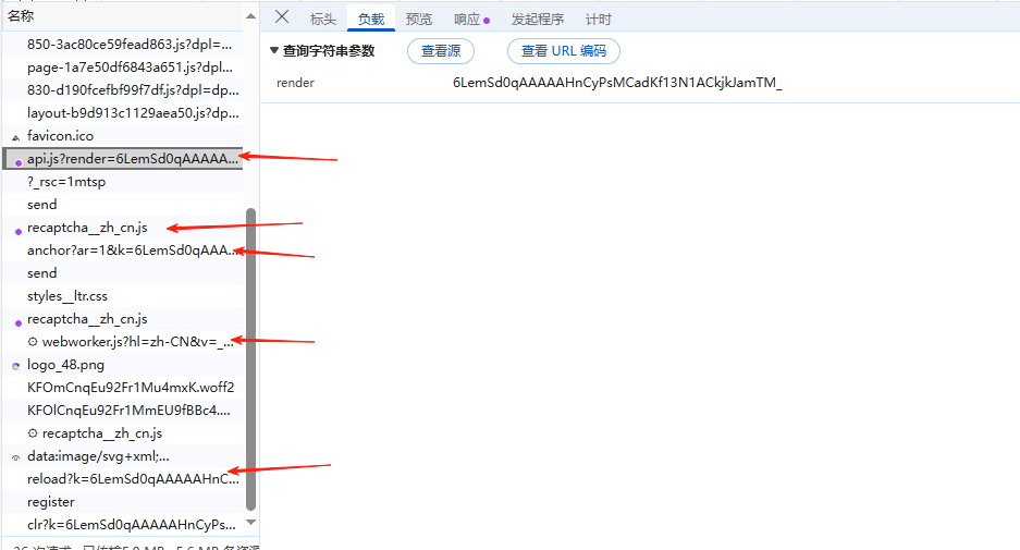 anchor 这个请求最核心的关注点就在这里,recaptcha-token 对应的 03 这个值会使用到最后的 26 位数组当中,recaptcha.anchor.Main.init 中的数组字符串更是与后面多个地方的加密息息相关,完全不能脱离。